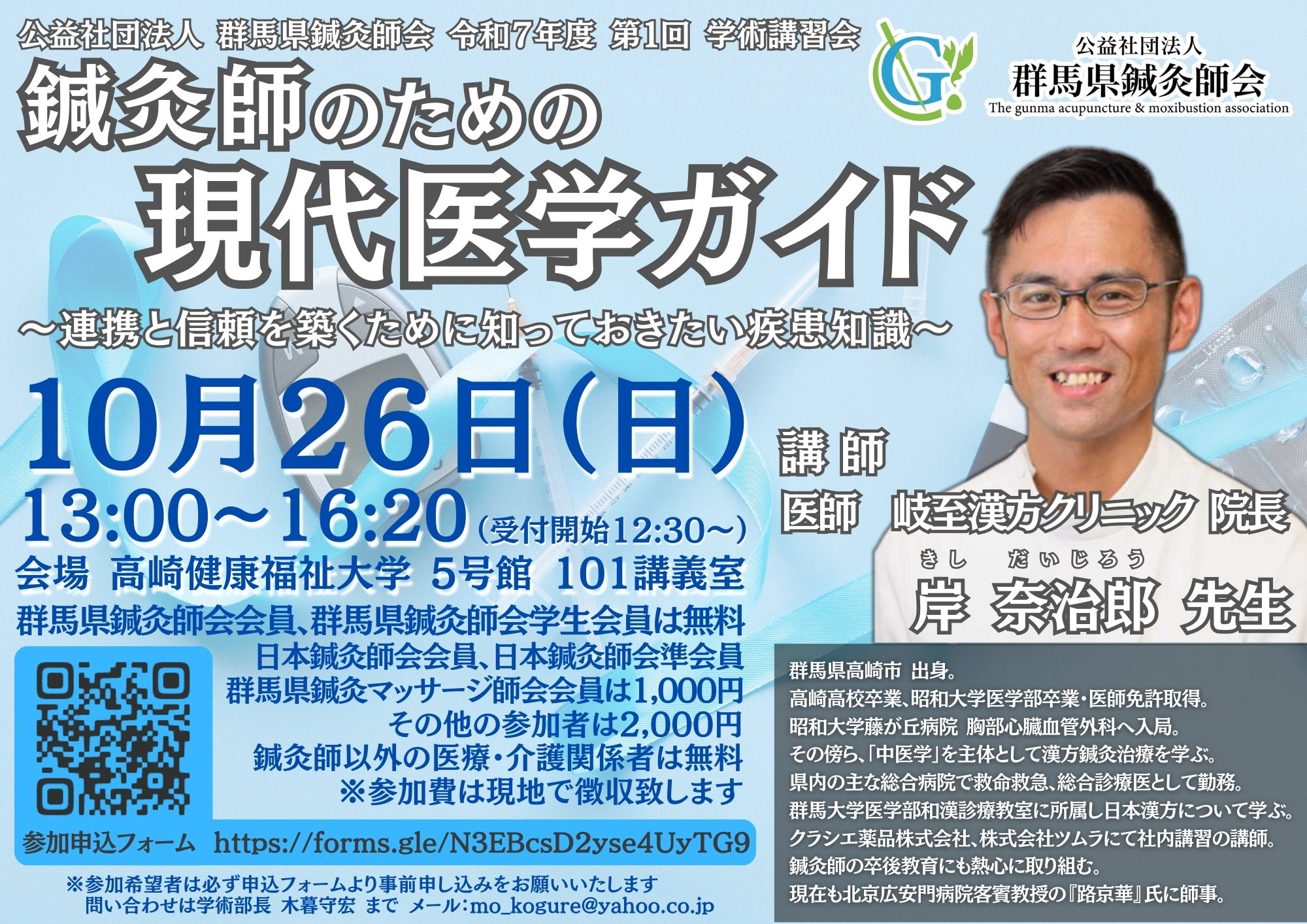 演 題 「鍼灸師のための現代医学ガイド~連携と信頼を築くために知っておきたい疾患知識〜」